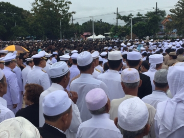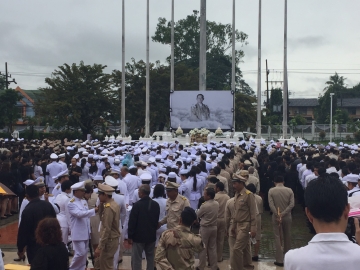 ผู้ว่าราชการจังหวัดกระบี่ ประธานกรรมการอิสลามประจำจังหวัดกระบี่นำพสกนิกรชาวจังหวัดกระบี่ ร่วมหมื่นแสดงความสำนึกในพระมหากรุณาธิคุณ ถวายอาลัยแด่พระบาทสมเด็จพระปรมินทรมหาภูมิพลอดุลยเดช ชาวกระบี่กล่าวแสดงความสำนึกในพระมหากรุณาธิคุณ ถวายอาลัยแด่พระบาทสมเด็จพระปรมินทรมหาภูมิพลอดุลยเดช เมื่อเวลา 09.30 น.วันนี้ (19 ต.ค.) ณ บริเวณสนามหน้าศาลากลางจังหวัดกระบี่ นายพินิจ บุญเลิศ ผู้ว่าราชการจังหวัดกระบี่ พร้อมด้วยข้าราชการ ทหาร ตำรวจ รัฐวิสาหกิจ องค์กรปกครองส่วนท้องถิ่น ผู้นำศาสนา ผู้นำชุมชน ประชาชน นักเรียน นักศึกษาในจังหวัดกระบี่ จำนวนกว่า 10,000 คน ได้มาร่วมพิธีกล่าวแสดงความสำนึกในพระมหากรุณาธิคุณ ถวายอาลัยแด่พระบาทสมเด็จพระปรมินทรมหาภูมิพลอดุลยเดช โดยผู้ที่มาร่วมพิธีได้ยืนสงบนิ่งอย่างพร้อมเพรียงตลอดพิธี ท่ามกลางสายฝนที่ตกลงมาโปรยปรายตลอดเวลา ชาวกระบี่กล่าวแสดงความสำนึกในพระมหากรุณาธิคุณ ถวายอาลัยแด่พระบาทสมเด็จพระปรมินทรมหาภูมิพลอดุลยเดช ภายในพิธี ผู้ว่าราชการจังหวัดกระบี่ ได้กล่าวนำพสกนิกรจังหวัดกระบี่ ขอให้สัตย์ปฏิญาณจะตั้งมั่นเจริญรอยตามพระยุคลบาท สืบสานพระราปณิธาน รู้รักสามัคคี เพื่อสร้างความเจริญรุ่งเรืองให้บ้านเมือง น้อมนำหลักปรัชญาเศรษฐกิจพอเพียงมาเป็นแนวทางในการดำเนินชีวิต มุ่งมั่นประกอบคุณงามความดี กตัญญูต่อแผ่นดิน เป็น คนกระบี่ดีทุกคน ตราบชีวิตจะหาไม่ ชาวกระบี่กล่าวแสดงความสำนึกในพระมหากรุณาธิคุณ ถวายอาลัยแด่พระบาทสมเด็จพระปรมินทรมหาภูมิพลอดุลยเดช นอกจากนี้ ผู้ว่าราชการจังหวัดกระบี่ ได้นำข้อความสำคัญในประวัติศาสตร์ของจังหวัดกระบี่ เมื่อครั้งพระบาทสมเด็จพระปรมินทรมหาภูมิมิพลอดุลยเดช ทรงเด็จพระราชดำเนินมายังจังหวัดกระบี่ เมื่อวันศุกร์ที่ 13 มีนาคม 2502 โดยทรงมีพระราชดำรัสว่า จังหวัดกระบี่สร้างขึ้นโดยประชาชน หวังว่าทุกคนจะช่วยกันต่อไป และจังหวัดนี้เชื่อว่าเป็นนิมิตดี เพราะช้างเผือกที่ได้รับ มาจากจังหวัดนี้