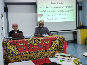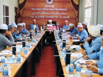 วันเสาร์ที่ 4 ตุลาคม 25568 เวลา 09.00 น ฮัจยีอัสนาวี มุคุระ ประธานกรรมการอิสลามประจำจังหวัดกระบี่ เป็นประธานเปิดดำเนินการประชุมคณะกรรมการอิสลามประจำจังหวัดกระบี่ ประจำเดือนตุลาคม 2568 ณ ห้องประชุมคณะกรรมการอิสลามประจำจังหวัดกระบี่ สำนักงานคณะกรรมการอิสลามประจำจังหวัดกระบี่ โดยมีสาระสำคัญตามระเบียบวาระการประชุม ดังนี้ รายงานผลการปฏิบัติภารกิจของประธาน/กอจ.กระบี่ ประจำเดือนกันยายน 2568 รายงานรายรับ - รายจ่าย ประจำเดือนกันยายน 2568 รายงานการใช้ห้องประชุม ประจำเดือนกันยายน 2568 แผนการคัดเลือกคณะกรรมการอิสลามประจำมัสยิด ประจำเดือนตุลาคม 2568 รายงานการดำเนินโครงการอบรมกรรมการอิสลามประจำมัสยิดที่ได้รับคัดเลือก ใหม่ ประจำเดือนกันยายน 2568 รายงานผลการปฏิบัติงานกรรมการกลางอิสลามแห่งประเทศไทย รายงานผลการดำเนินงานของมูลนิธิมุสลิมสามัคคีจังหวัดกระบี่ รายงานผลการปฏิบัติงานฝ่ายเผยแพร่ศาสนาดะวะห์ ตับลีฆ รายงานสรุปงานเทศกาลอาหารฮาลาลจังหวัดกระบี่ การจัดงานเมาว์ลิดกลางจังหวัดกระบี่ ครั้งที่ 45 พิจารณาดำเนินโครงการอบรมเชิงปฏิบัติการคณะกรรมการอิสลามประจ ามัสยิดฝ่ายทะเบียน พิจารณาโครงการกองทุนคนละบาทสำนักงานคณะกรรมการอิสลามประจำจังหวัดกระบี่ พิจารณาหลักเกณฑ์คุณสมบัติการดำรงตำแหน่งอิหม่าม คอเต็บ บิหลั่น ตาม พรบ.2540 ในหมวด๕ มาตรา ๓๑ เรื่อง เสนอขอมติรับรองและแต่งตั้งคณะกรรมการอิสลามประจำมัสยิดประจำเดือน ตุลาคม 2568 เรื่อง พิจารณาสถานประกอบการที่ขอรับรองฮาลาล ประจำเดือนกันยายน 2568 จำนวน 7 ราย เรื่อง พิจารณาแต่งตั้งที่ปรึกษาประจำสถานประกอบการ